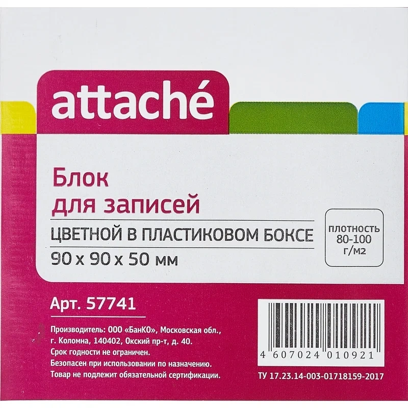 Блок для записей в подставке Attache цветной, 90х90х50мм