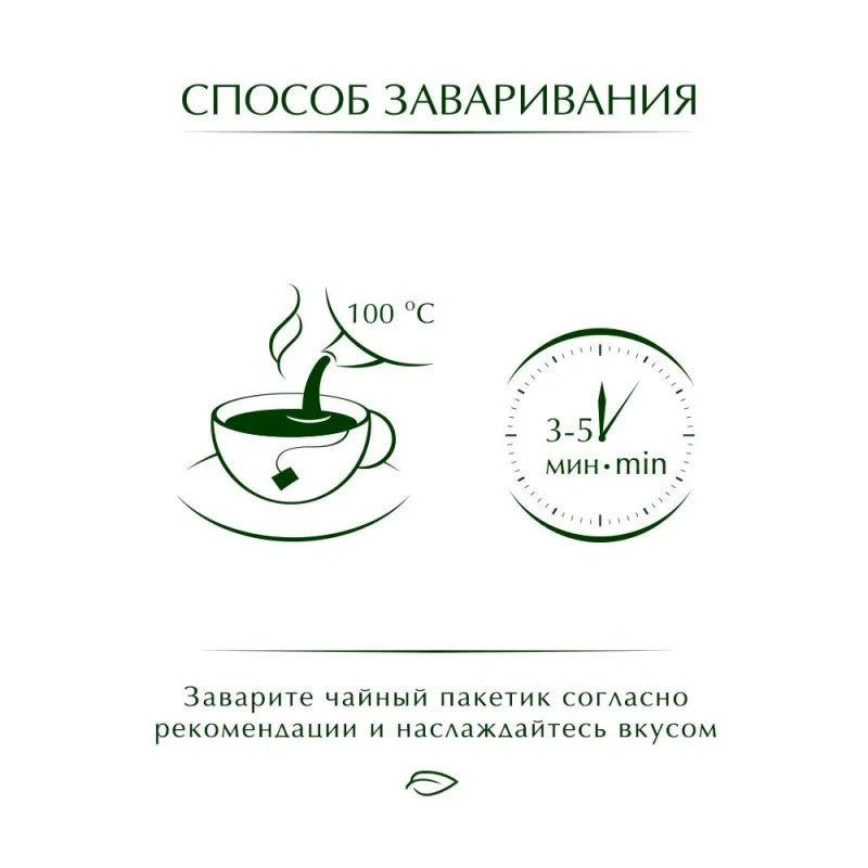 Способ приготовления: залейте чайный пакетик горячей воды, дайте чаю настояться 5-7 минут.