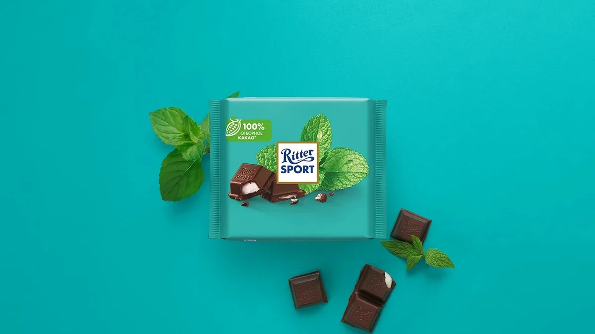 Шоколад Ritter Sport 100г с мятой, темный
